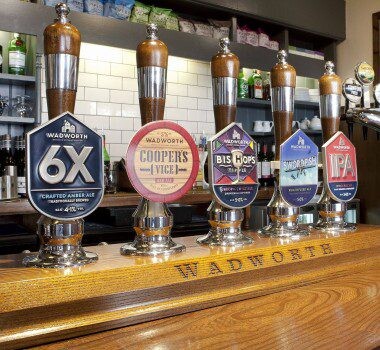 We have a range of draught lagers and ciders on tap as well as our award-winning Wadworth ales. We are proud of our Cask Marque accreditation and wear our badge with pride. With a wide range of wines and spirits you’re sure to find your favourite tipple or something new to strike your fancy.